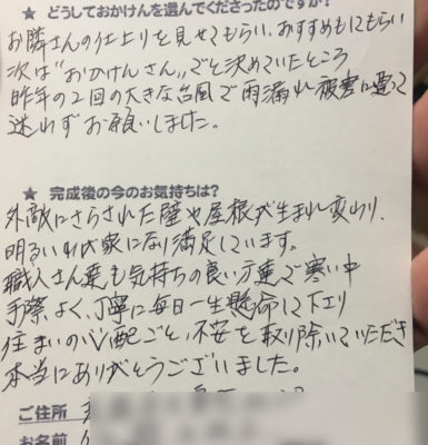 トップページ > お客様の声一覧 > お隣さんの仕上がりと職人さんに納得