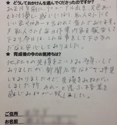 トップページ > お客様の声一覧 > 作業内容がわかりやすかった…