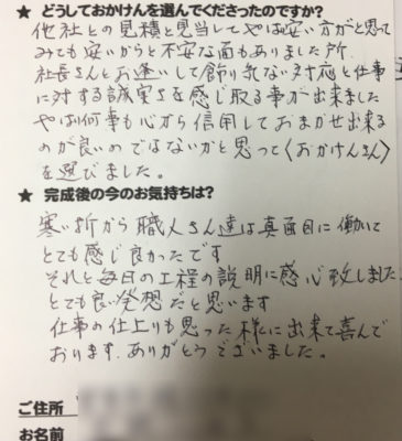 お客様から頂いた大切なお客様の声をご紹介させていただきます