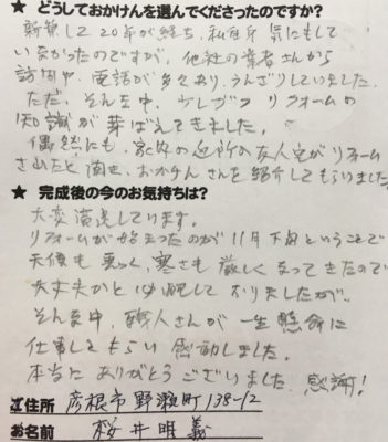 お客様から頂いた大切なお客様の声をご紹介させていただきます