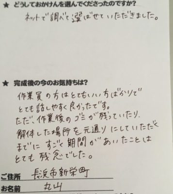 トップページ > お客様の声一覧 > 足場解体後の後始末にすごく期間があいたことは残念