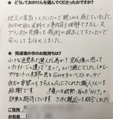 お客様から頂いた大切なお客様の声をご紹介させていただきます