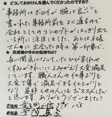 お客様から頂いた大切なお客様の声をご紹介させていただきます