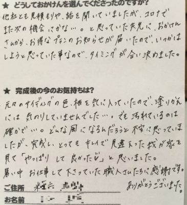 お客様から頂いた大切なお客様の声をご紹介させていただきます