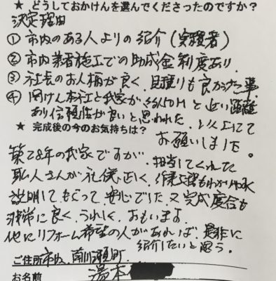 他にリフォーム希望の人があれば、是非に紹介したいと思う。