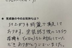 塗装終了後のこちらの指摘も、その日のうちに対応していただきありがとうございました。