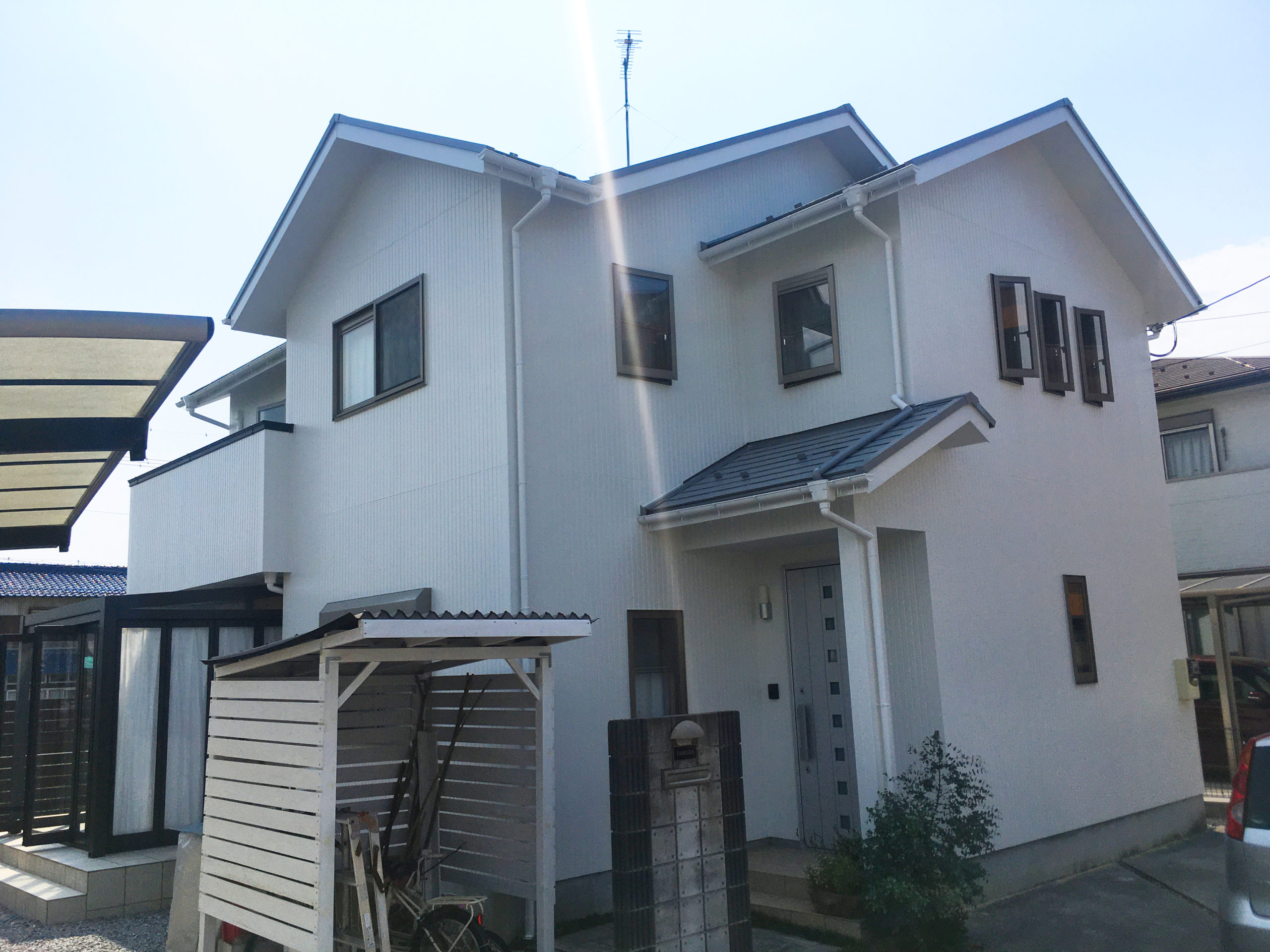 ? ? ?彦根市高宮町 Tさま 彦根市高宮町 Tさま 屋根・外壁塗装 彦根市の補助金を利用した塗装リフォームを検討していました。 何軒かに無料見積りをして、それから決めさせていただきました。 施工前(外壁) 施工後(外壁)