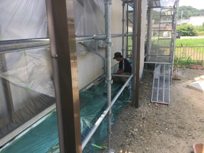 彦根市小泉町、甲良町在士にて塗り替え中