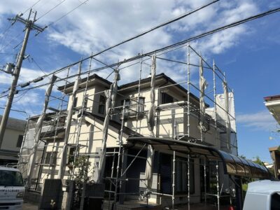 いつもありがとうございます。彦根市平田町のお客様宅で塗替えが始まりました。